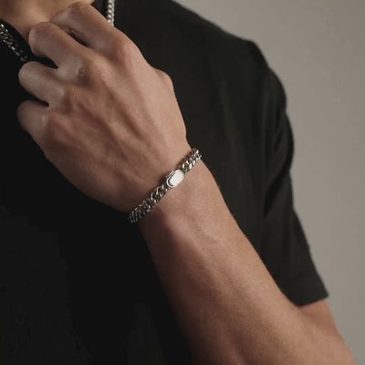 No collection is complete without a classic Cuban link. Wear it solo, or stack it with any other piece. Either way, you won’t go unnoticed. Designed to wrap effortlessly around your wrist, its silver, 8mm links are secured with our signature snap-proof clasp and finished with scratch and fade-resistant protection.
